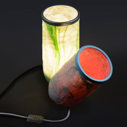 Basada en la reutilización de material plástico, en este caso bolsas de mercados o supermercados ya que es uno de los productos mas contaminantes del planeta con un tiempo de degradación de 200 años. El proceso de transformación es con calor logrando su forma de píldora, en la cual su base tiene un contrapeso de cemento donde también se aloja la lampara, gracias a este contrapeso la lampara se puede balancear o inclinar para lograr iluminar otras zonas.