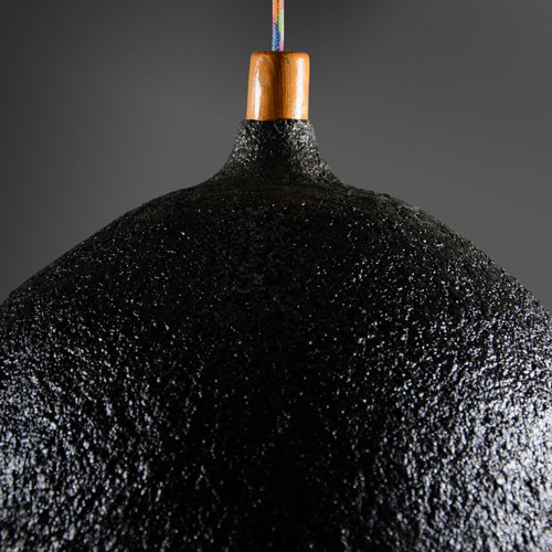La utilización de material reciclado y la búsqueda conceptual del ging gang, se plasmo en la nueva lampara pompa, con papel reciclado en pulpa de papel y con un profundo contraste entre el exterior y el interior, generando un equilibrio dinámico.